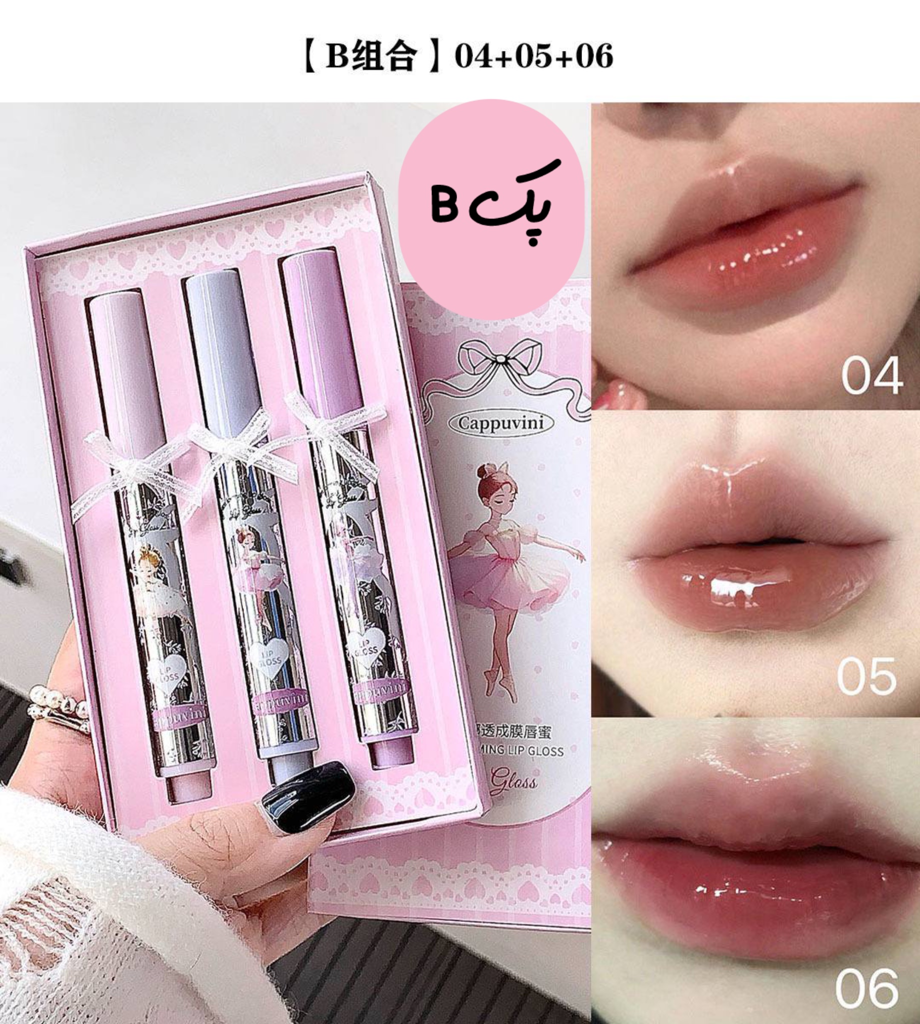 اگر بهدنبال یک پک رژ لب خاص، فانتزی و کاربردی هستید که هم ظاهر دلنشینی داشته باشد و هم کیفیت بالایی ارائه دهد، پک رژ لب براق Cappuvini مدل Ballerina انتخابی بینظیر برای شماست. این محصول با طراحی الهامگرفته از بالرین و رنگبندی صورتی کلاسیک، برای نوجوانان و دوستداران استایلهای ژاپنی و کرهای بسیار جذاب خواهد بود.