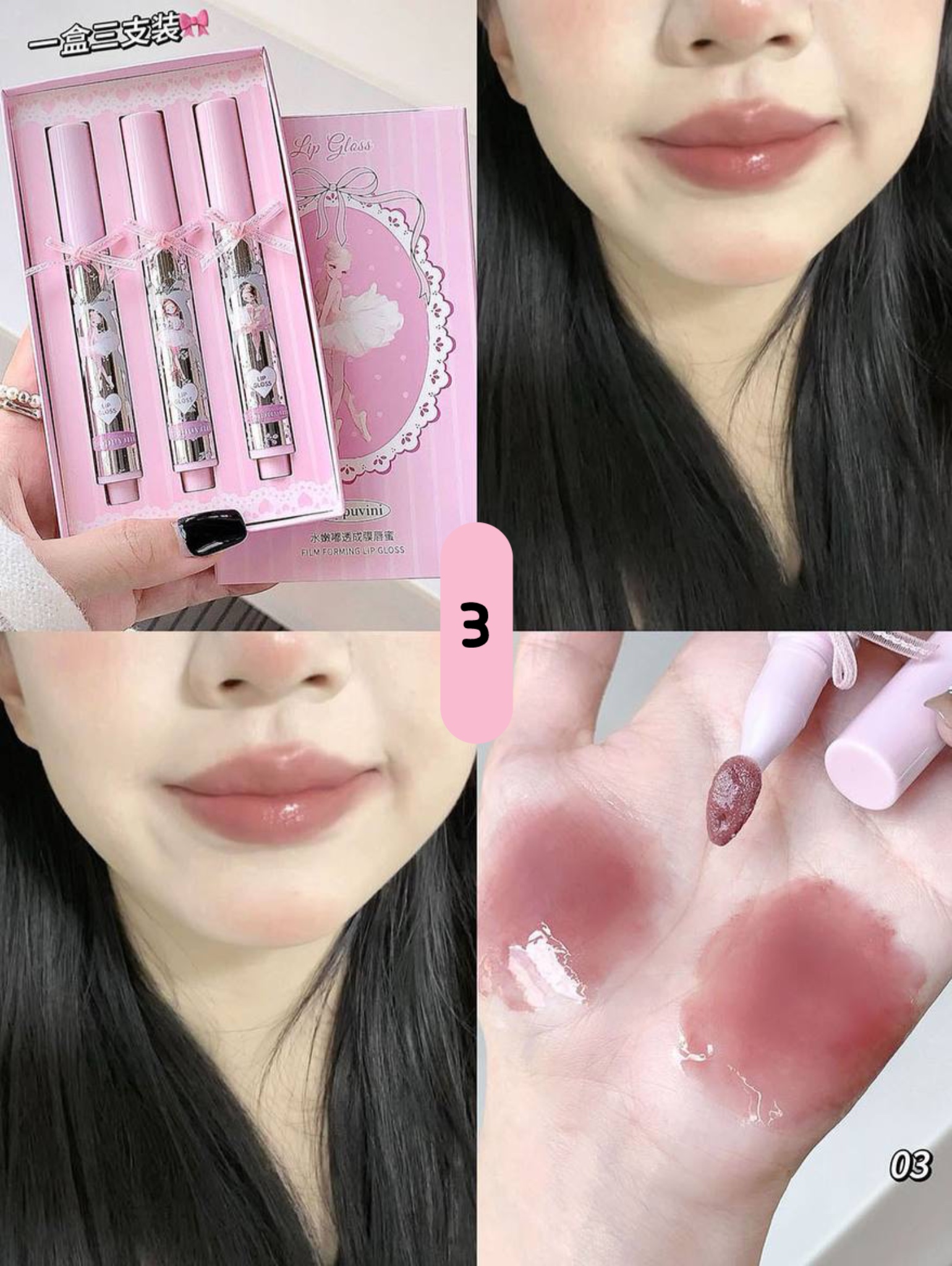 این پک سهتایی شامل طیف رنگهای ملایم، شفاف و دخترانه است که میتوانید بسته به موقعیت از آنها استفاده کنید: